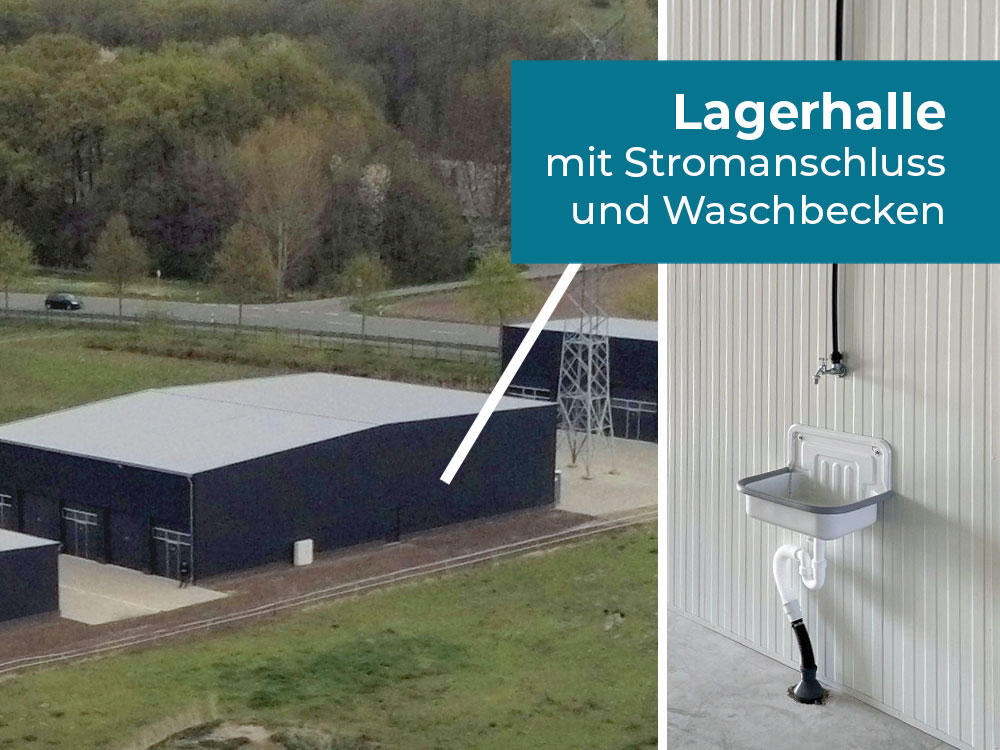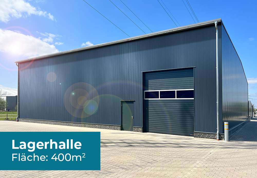 Die Lagerhalle hat eine Fläche von 400qm bei einer Deckenhöhe von 7 Metern